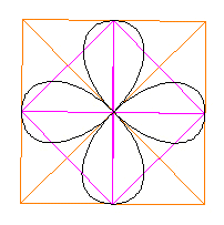 Now we need to trim each of the 4 circles as shown in the following illustration. (Note that we are removing 120 degrees from each of the 4 circles.)