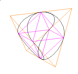 The result is the pattern in its open position. Note that the 2 "cross over/under" points are at the top and bottom of this illustration and are located at the mid-edge points of 2 of the tetrahedron's edges.