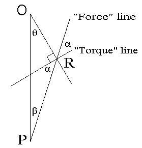 Since we now have the magnitude of the force and we know that the force will be along the line joining the two current elements ("Force line" in the above diagram) we see that the magnitude of the torque about "O" is given by