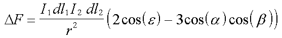 NOTE: The symbol "r" in Ampere's equation above is the distance between the two current elements. Unfortunately, I have used the symbol "r" in the following diagram and equations as the radius of the VACE torus circle. I hope this will not cause you too much confusion.